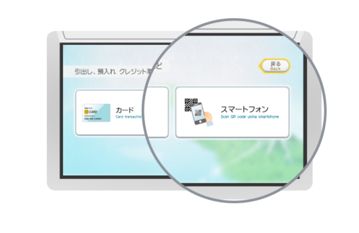 - セブン銀行ATMの画面にて[スマートフォン]を押下